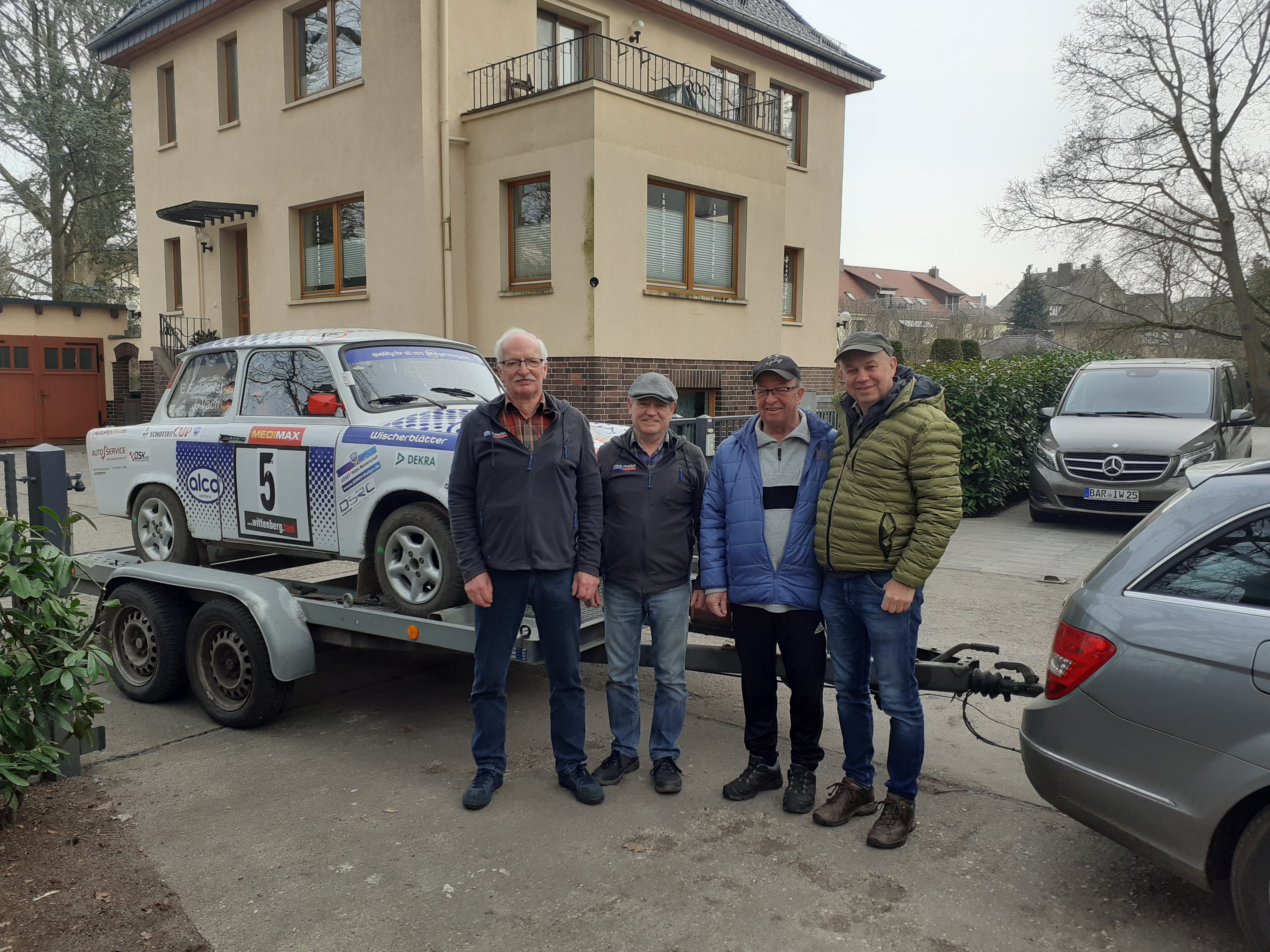 Mit Unterstützung eines ortskundigen konnten wir unsere Serviceteam über Schleichwege zu unserem Standort lotsen. Von Zuschauern wurde wir an ihren Grill eingeladen und mit Bratwurst versorgt.  Nach dem Ende der Rallye konnte die Rennpappe zu unserem Quartier geschleppt und mit Muskelkraft auf den Trailer geschoben werden. In 4 Wochen wollen wir zur Roland Rallye wieder an den Start rollen.