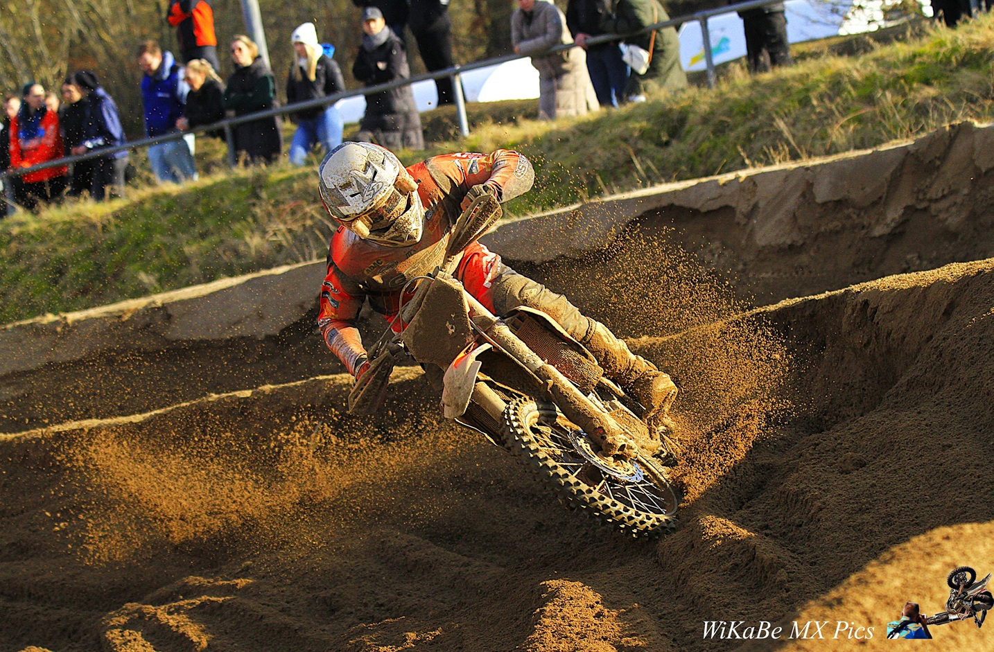 Bei herrlichem Frühlingswetter, einer optimal vorbereiteten, wenn auch sehr tiefen Sandstrecke, ging es raus zur ersten Standortbestimmung. In einem international gut gemischten Starterfeld mit etlichen WM erprobten Fahrern konnte Peter seine GST Berlin KTM im Qualitraining schon gleich auf Platz 5 von 32 stellen! Oha mag so manch einer gedacht haben ... ich hatte es erwartet. :-) Und die Bestätigung folgte auf dem Fuße: in Lauf 1 zog Peter den Holeshot!!! Die orangene SX-F 450 bog als erster um die Startkurve, Peter war in seinem Element und behauptete sich sehenswert. Er bewahrte kühlen Kopf, riskierte nicht das Letzte und wurde als 4. abgewunken. ... wenn das mal kein ordentlicher Saison Auftakt war! Rennen 2 begann wieder mit einem sehr guten Start, Peter war im Vorderfeld dabei und kam auf P 5 aus der Auftaktrunde.