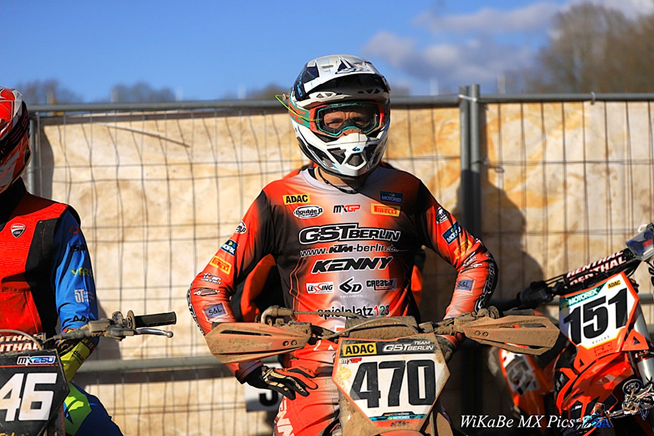 Nach einigem hin und her und zwischenzeitlich sehenswerten fights behauptete Peter diese Position bis zur Zielflagge. Mit einem breiten Grinsen unterm Helm und einem Daumen nach oben fuhr er ins Fahrerlager zurück und war top zufrieden. Alles in allem ein Auftakt nach Maß. Die ersten Rennerfahrungen im neuen Jahr sind also gesammelt, Peter ist gut unterwegs und Tagesrang 4 nach Tom Koch, Nicolai Skovbjerg und Harry Kullas, allesamt mit intensiver WM Erfahrung, lässt uns hoffen. Schon am kommenden Sonntag steht der nächste Klassiker auf dem Programm: es geht in den tiefen Sand zum MSV Dolle. Dort ist wieder ordentlich Kondition und gute Spurwahl gefragt, beides hat Peter im Gepäck, wir sind zuversichtlich. Bis dahin also, wie immer beste Grüße an alle von Winny aus Berlin